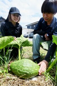 当JAは27日、管内の圃場でラグビーボール型カボチャ「ロロン」の圃場巡回を行いました。 「ロロン」はラグビーボール型に生育するカボチャで、熊谷市がラグビー…