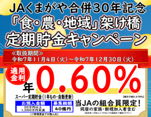 JAくまがや合併30年記念「食・農・地域」架け橋 定期貯金キャンペーン