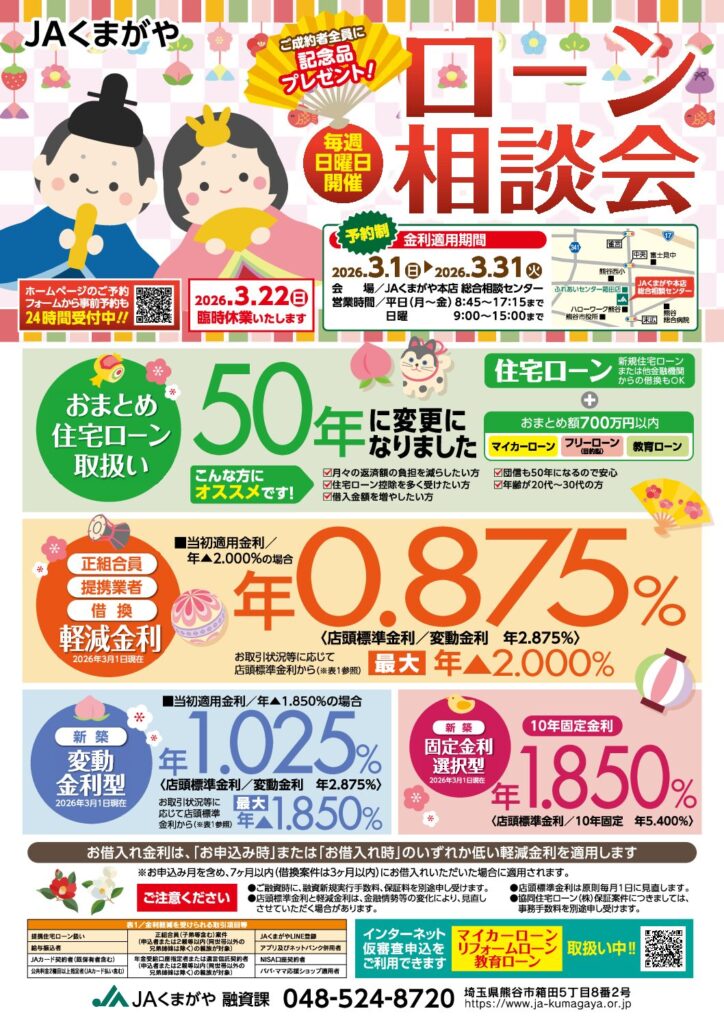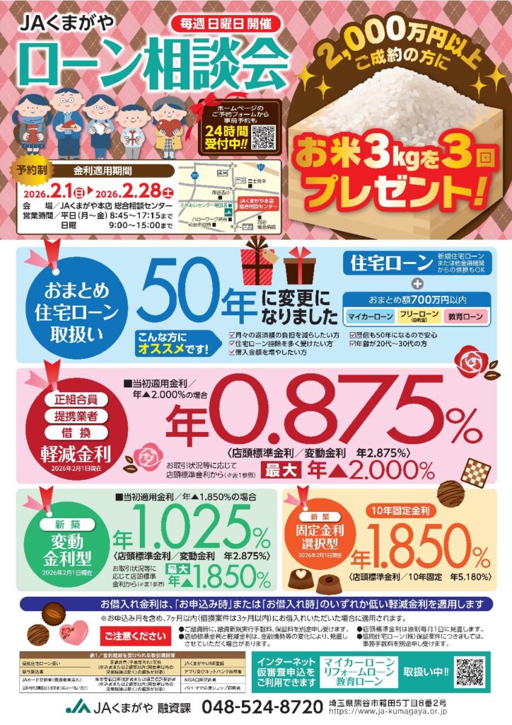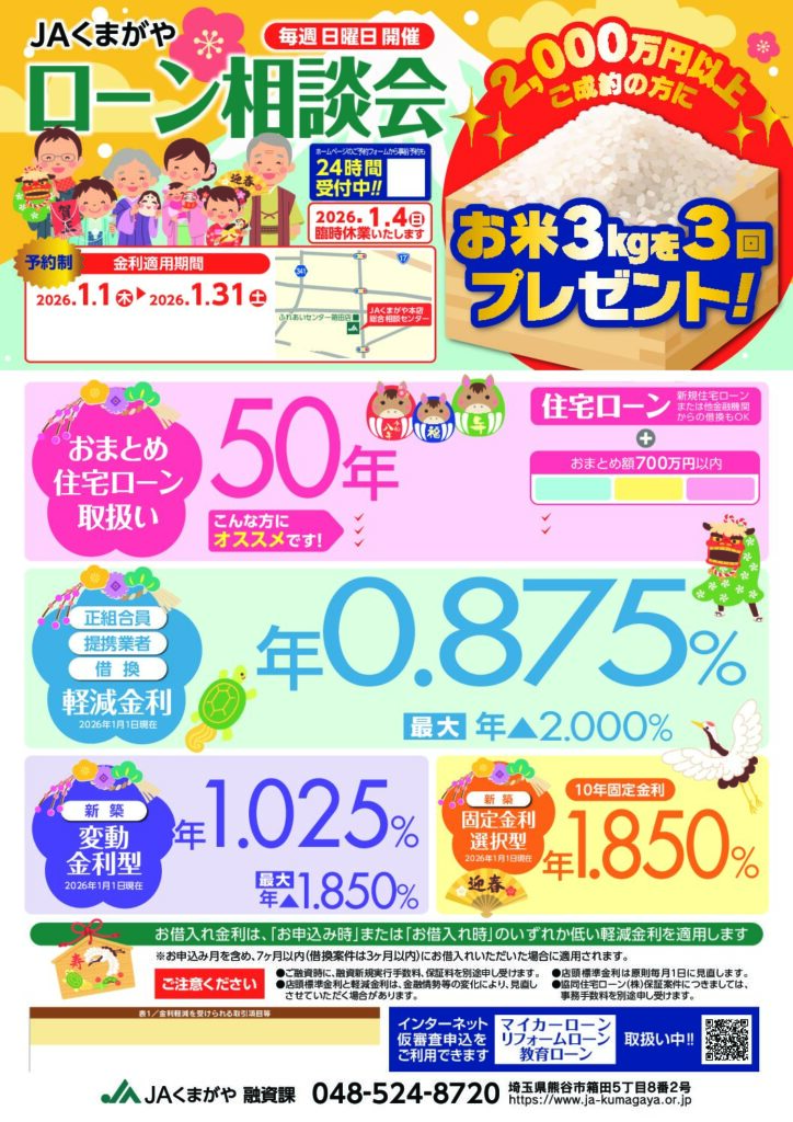 ※住宅ローンにつきましては、建築地が熊谷市内の方が対象となります。