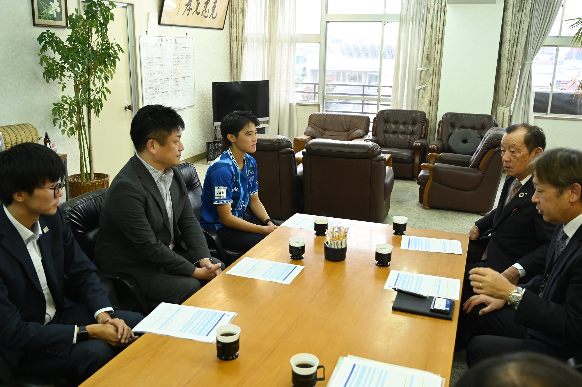 13日には、同チームに所属する長江伊吹選手がJAを訪問し、吉田公一組合長と対談しました。