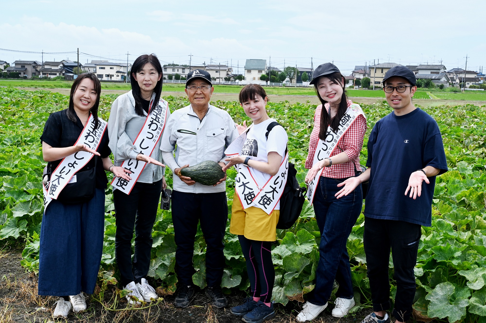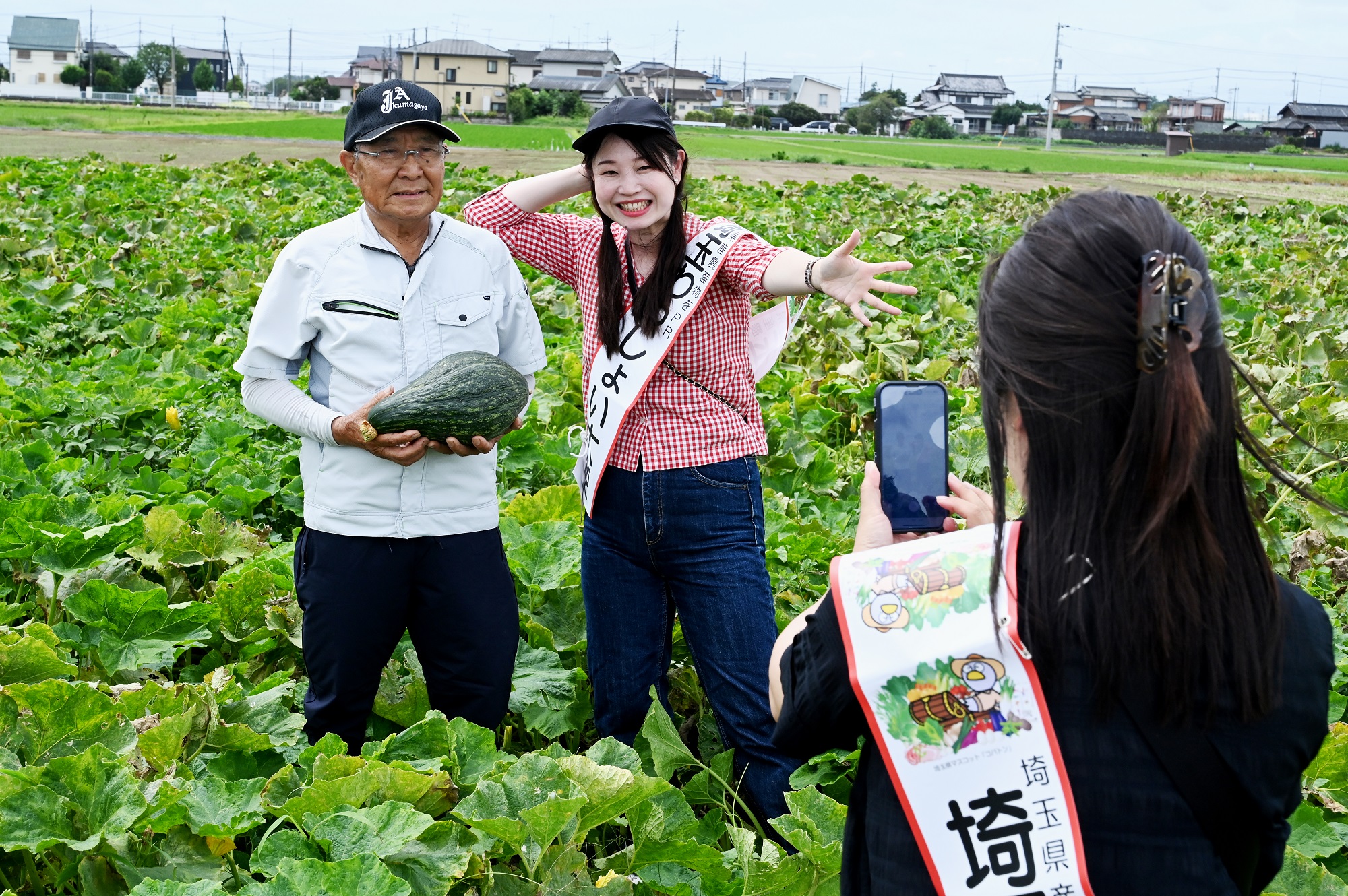 インスタグラムを通じて埼玉県産農産物の魅力を発信する「埼玉わっしょい大使」と「埼玉県広報アンバサダー」は17日、熊谷市で同市の特産品であるラグビーボール型カボチャの品種「ロロン」の取材活動を行いました。