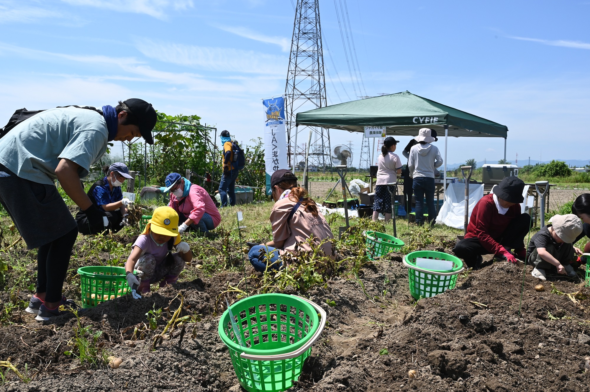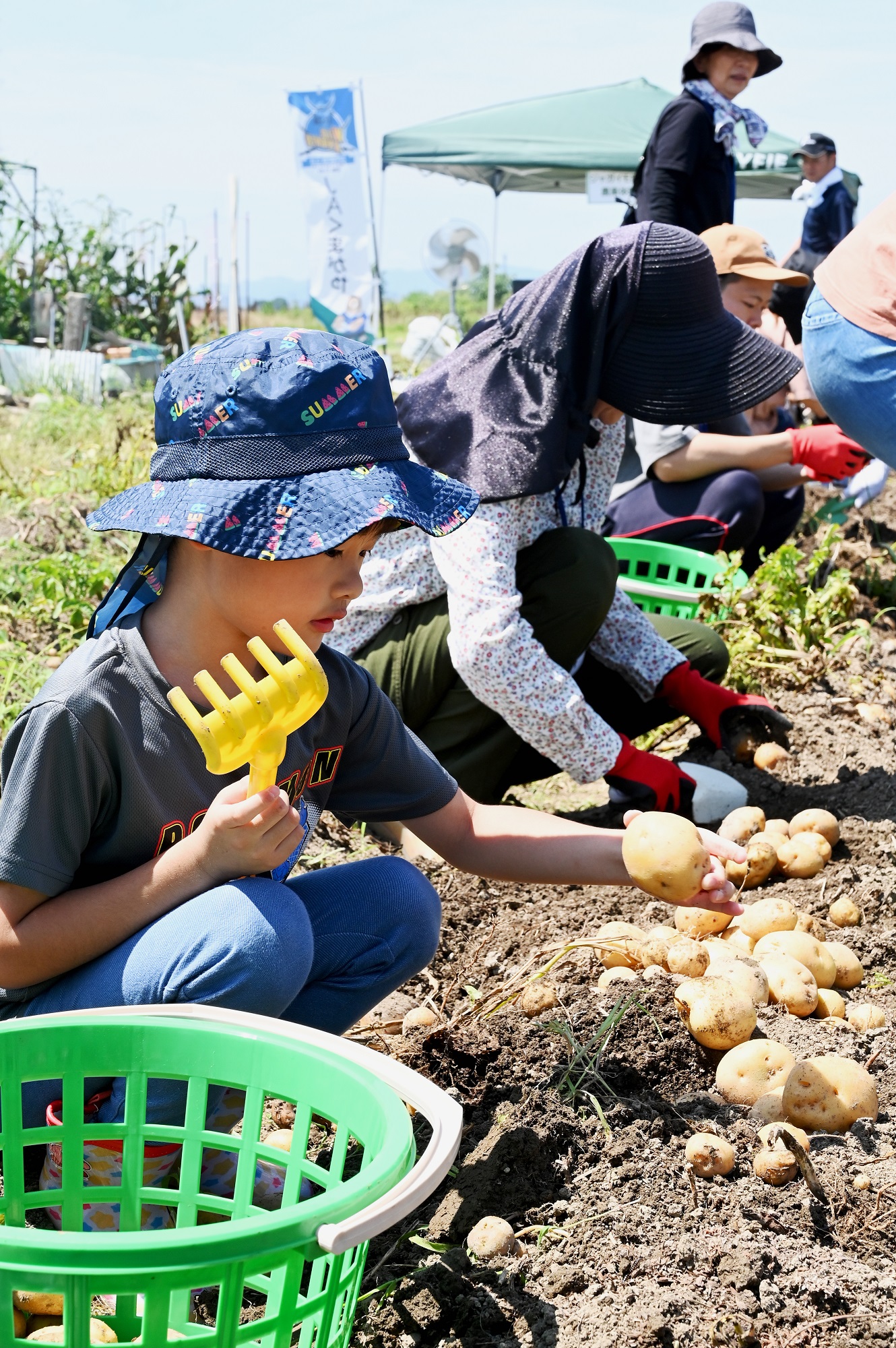 当JAは28日、管理する市民農園「ふれあい農園」で、ジャガイモの収穫体験を開きました。42人の応募者が参加し、晴天の下、ジャガイモ掘りを楽しみました。
