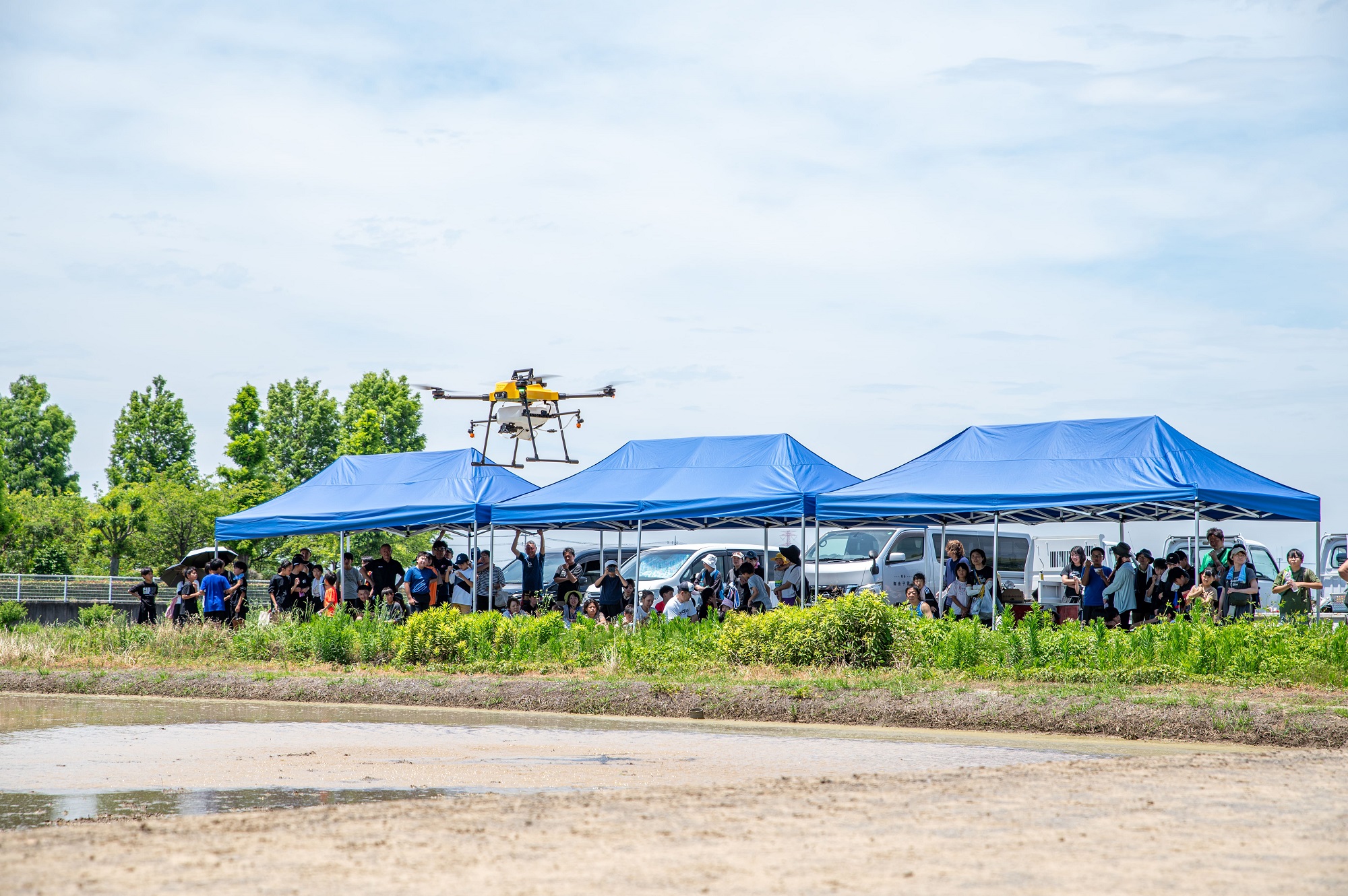 タグラグビー終了後は、当JAが参加者にスマート農業を紹介するため、GPSを使った農業用ドローンの自動運転の実演を行いました。
