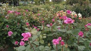 妻沼店の前にあるバラ園ですが、満開までもう少しとなっております。