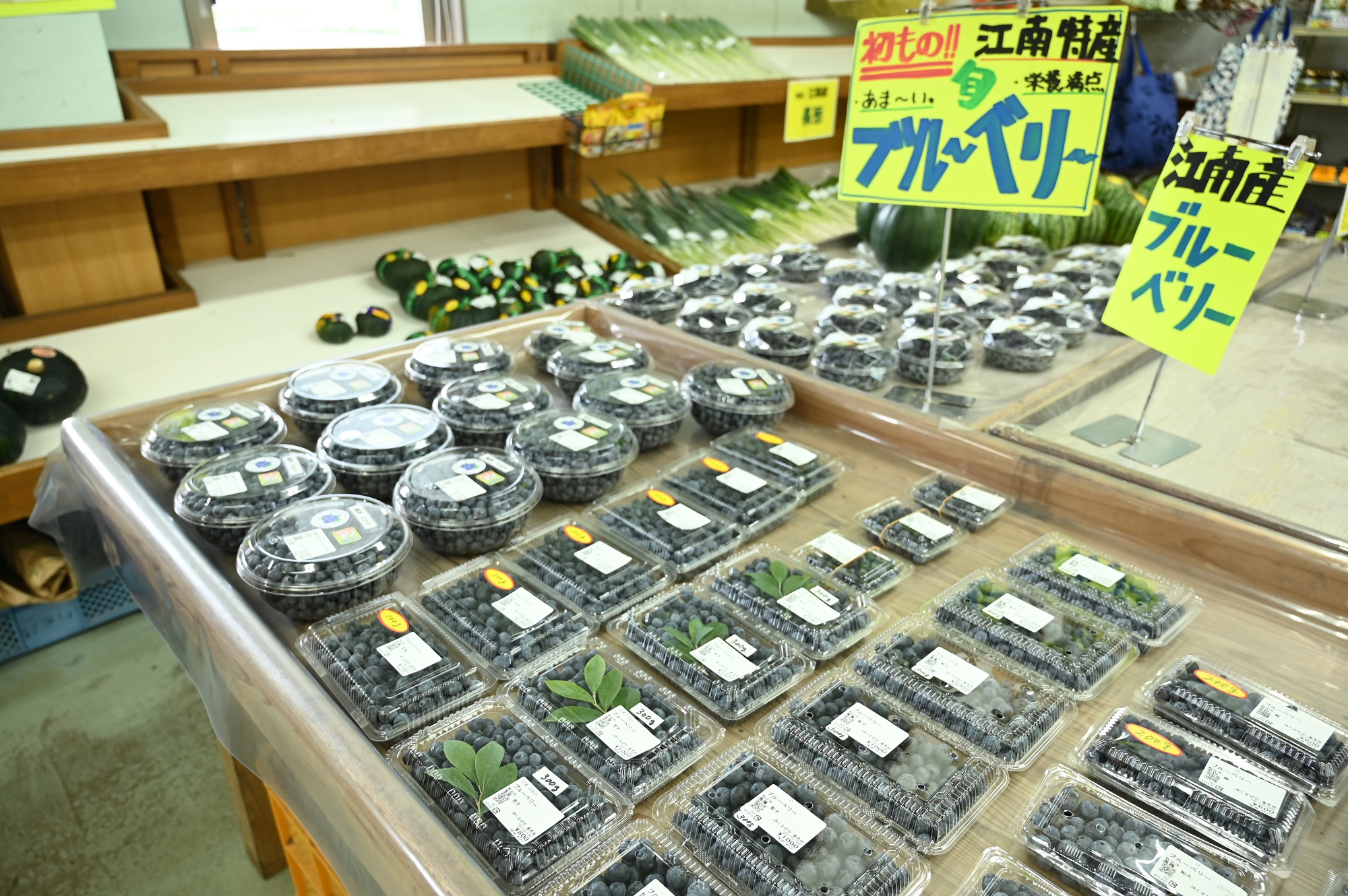 江南店では特産品のブルーベリーを特設コーナーにて販売しております♪