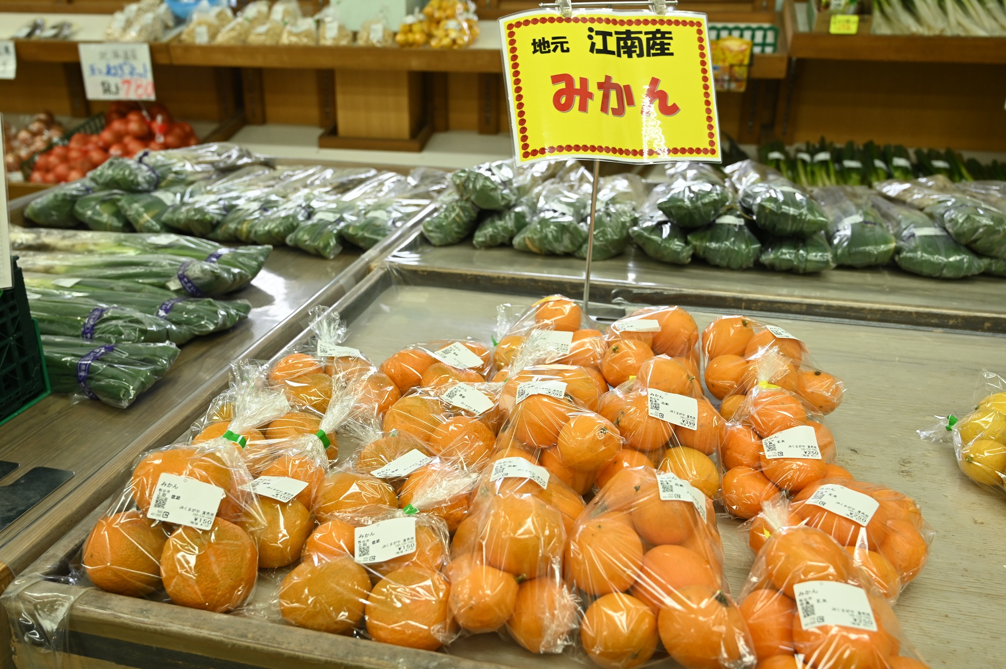 江南地区の冬野菜の他に地元の果物もたくさん入荷されております。