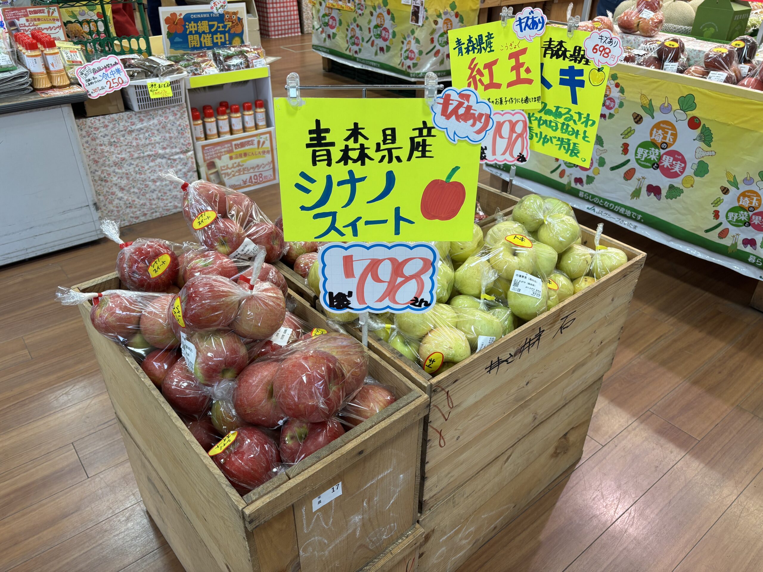 毎週違う種類のリンゴをお得価格で販売しているので、売り切れ必須です! 早いもの勝ちですよ~