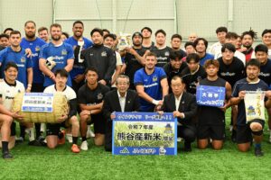 「埼玉パナソニックワイルドナイツ」に新米と大和芋を贈呈