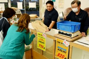 当JAは4日、5日の2日間、農産物直売所ふれあいセンター5店舗で「新米まつり」を開きました。 2日間合計で7742人の来客があり、玄米の総販売量は約53ト…